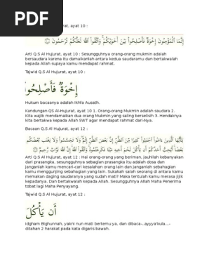 Hukum Tajwid Pada Surat Al Hujurat Ayat 12 from imgv2-2-f.scribdassets.com Maybe you would like to learn more about one of these? Check spelling or type a new query. We did not find results for: Surat al hujurat ayat 10 11 12 beserta tajwidnya.